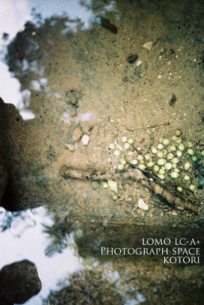 水の中のどんぐりと風景の写り込みがいい感じ♪