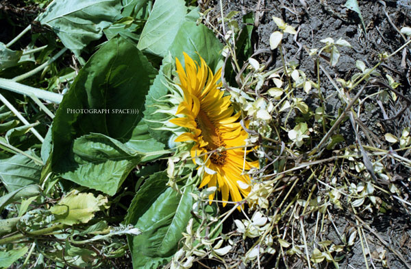 折れたひまわり。